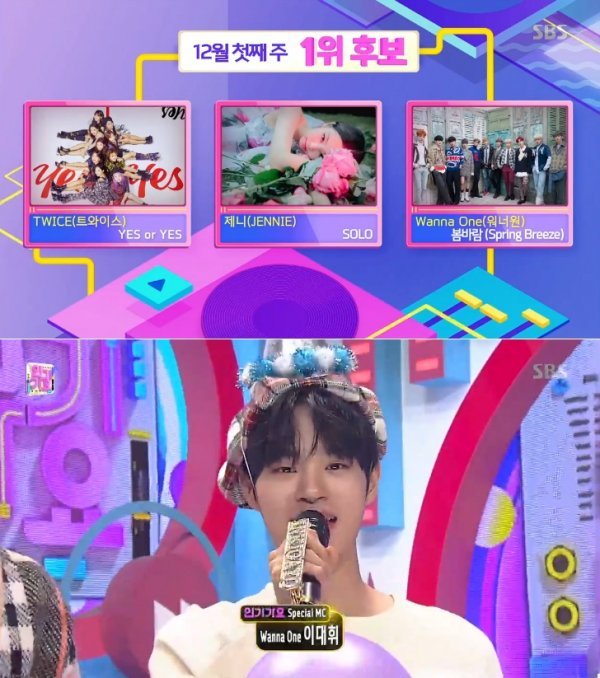 이날 공개된 1위 후보는 트와이스 ‘예스 올 예스’와 제니 ‘솔로’ 그리고 워너원 ‘봄바람’이었다.