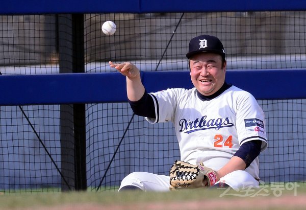 사회인 3부 결승 덜백스와 대흥브라더스 경기 4회초 2사 덜백스 이봉수가 파울볼을 잡은 후 밝게 웃고 있다.
