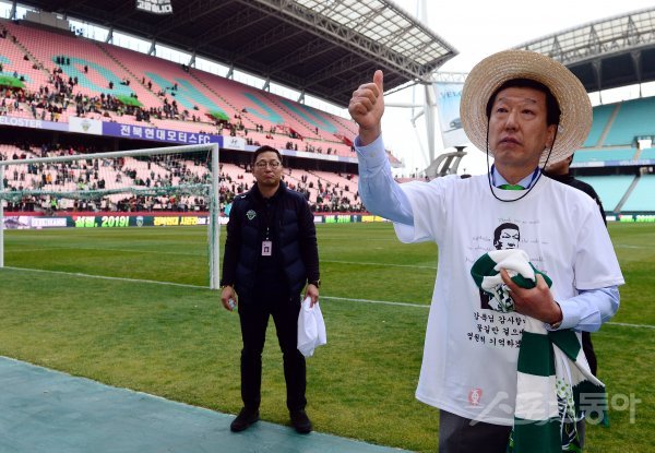 중국으로 떠나는 전북 최강희 감독의 고별 경기가 종료된 뒤 최강희 감독이 팬들에게 인사하고 있다.