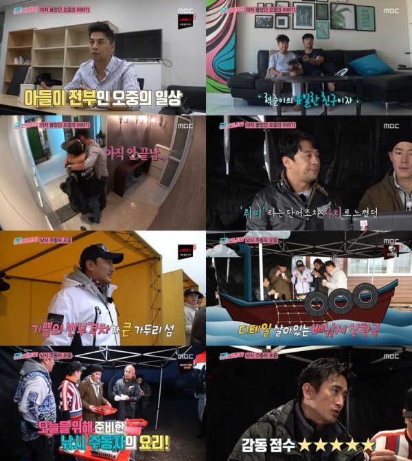하지만 낚시터에 도착한 이들의 고난은 끝나지 않았다. 물에 담가야 할 찌를 바닥에 내팽개치는가 하면 애꿎은 카메라맨을 낚는 ‘낚시 똥손’들의 총집합임을 보여주며 시청자들의 배꼽을 잡았다. 각종 고난과 역경(?) 끝에 낚시에 성공한 다섯 남편은 일일 셰프로 변신한 권오중의 요리로 먹음직스러운 먹방을 선사했다.