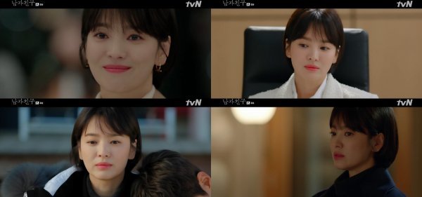 6일 방송된 tvN 수목드라마 ‘남자친구’(극본 유영아/연출 박신우) 4회 엔딩에서 송혜교(차수현 역)는 눈빛연기로 시청자들의 시선을 사로 잡았다.