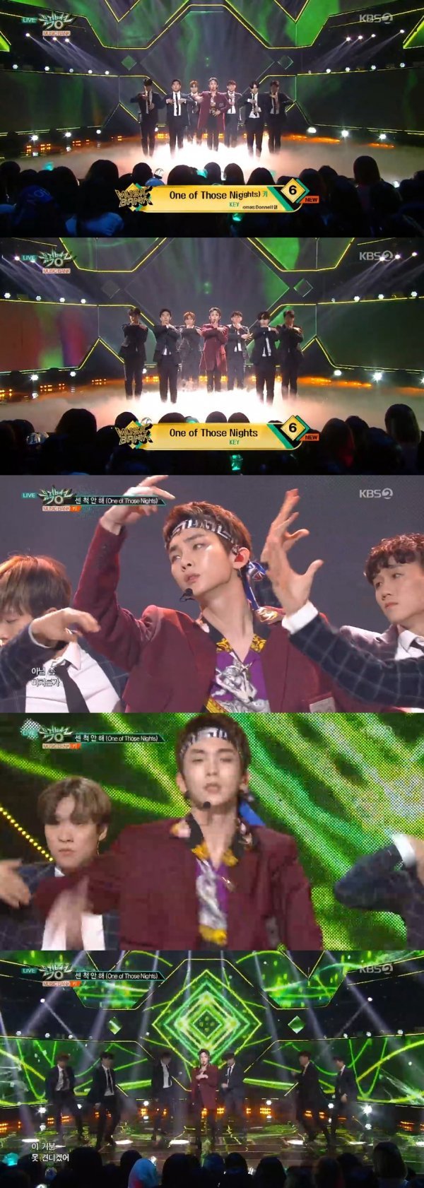 7일 오후 방송된 KBS2 가요프로그램 ‘뮤직뱅크’에서는 솔로로 돌아온 키가 ‘센 척 안 해’ 무대를 꾸미는 모습이 전파를 탔다.