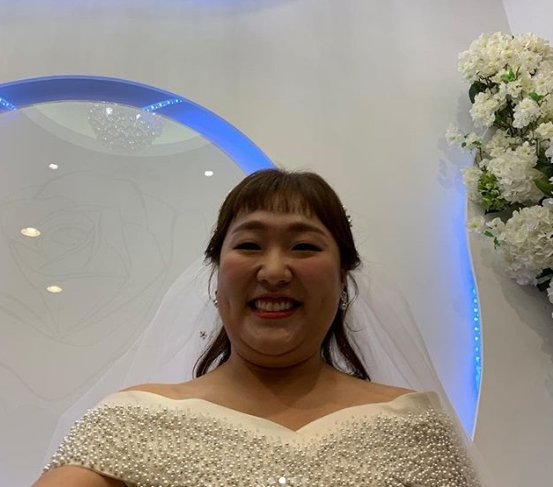 개그우먼 김영희가 신부가 된 동료 개그우먼 이수지의 모습을 공개했다.