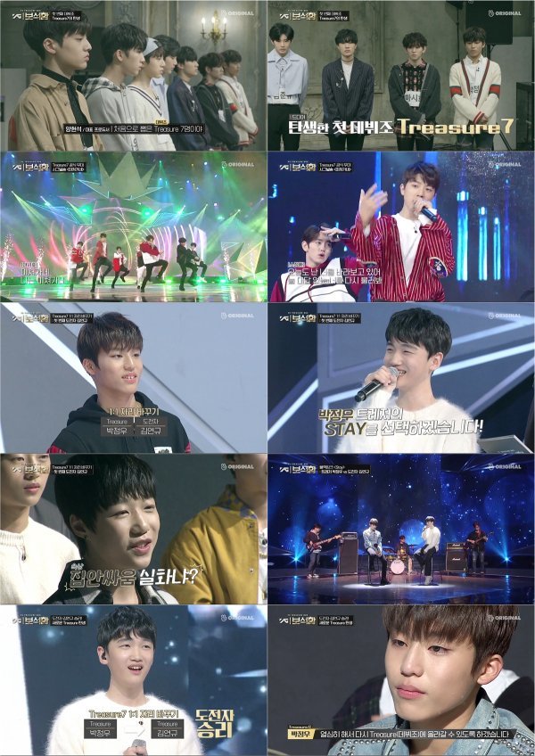 첫 번째 경연 무대는 김준규, 마시호, 박정우, 방예담, 소정환, 하루토, 하윤빈 등 트레저 7인의 \'미쳐가네\' 무대로 시작됐다. 이들의 퍼포먼스를 무대 아래에서 지켜 본 박지훈은 "오늘의 감정을 다시 느끼고 싶지 않다"며 도전 의지를 다졌다.