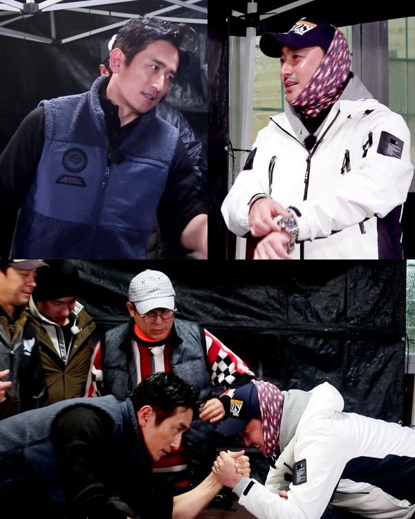 차인표가 먼저 옷을 벗으며 도발하자 안정환 역시 갑자기 손목시계를 풀며 승부욕을 불태워 장내가 후끈하게 달아올랐다.