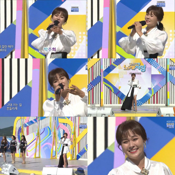 가수 박주희가 9일 오후 방송된 KBS1 ‘전국노래자랑’ 전남 강진 편에 초대가수로 출연해 깊은 트로트 감성을 선보였다.