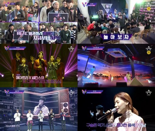 본격적인 ‘매시업’ 공연에서는 A조와 B조 플레이어들이 매시업된 NEW 조합을 확인할 수 있었다. 첫 등장한 팀은 윤상 팀의 ‘메이트리X넵킨스’ 조합이었다. 프라이머리의 ‘씨스루’와 박진영의 ‘어머님이 누구니’를 마치 한 곡처럼 편곡해 프로듀서들의 호평을 받았다. 화려한 마이크 퍼포먼스와 안무까지 더해져 관객들의 눈길을 사로잡았다.