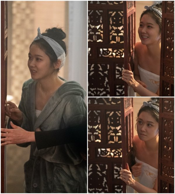 이와 관련 장나라가 황제 신성록과의 ‘첫날밤 맞이’ 커플 마사지를 위해 기다리고 있는, 앙증맞은 ‘빼꼼 자태’ 비하인드 컷이 공개돼 눈길을 사로잡고 있다.