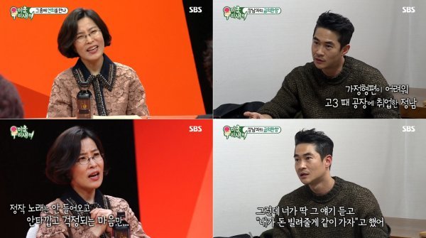 배정남은 “우리 정말 힘들게 컸는데. 내가 이 직업을 할 줄은 몰랐다”면서 옛 추억에 잠겼다. 그는 “공장에서 일할 때 시급이 2050원이었다. 첫 월급으로 50만원을 받은 게 기억난다. 야간작업은 시급이 4100원이라 돈독이 올라서 백몇십만 원인가 벌었는데”라며 “공장에 뼈를 묻을 뻔 했다”고 털어놨다. 친구는 “맞다. 그때 네가 사무살 사람들보다 더 벌었다”고 말했다. 배정남은 “그때 진자 무식하게 일했다. 시급 2050원을 받으면서 돈의 가치와 소중함을 알았다. 돈을 편하게 못 쓰겠더라”고 고백했다.