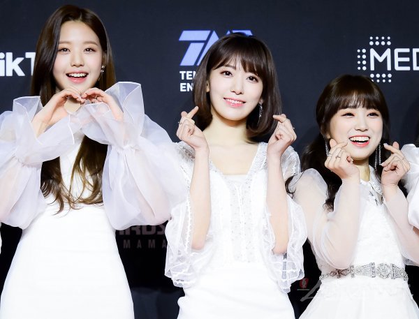 아이즈원의 장원영과 미와야키 사쿠라, 야부키 나코(왼쪽부터)가 10일 서울 중구 을지로 동대문디자인플라자(DDP)에서 열린 2018 엠넷 마마 프리미어 인 코리아(2018 Mnet Asian Music Awards PREMIERE in KOREA) 레드카펫 행사에 참석해 포즈를 취하고 있다.