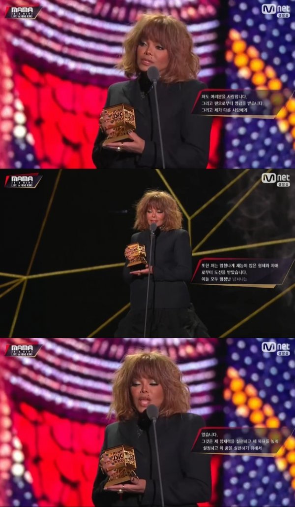 [2018 마마 홍콩] 자넷잭슨, 인스피레이션상 수상 “멋진 상 받아 기쁘다”