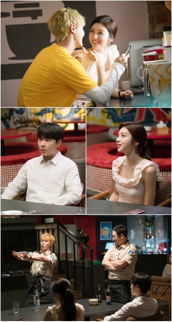 사진 속에는 심쿵툰 작업실에 나란히 앉은 오고운(채서진 분)과 문정원(이태리 분)의 다정한 순간이 담겨 있다. 또한 그가 알바중인 펍에서 펼치는 칵테일 쇼를 지켜보는 임현우(용준형 분)와 오고운 사이에는 각기 다른 분위기가 느껴져 흥미진진한 스토리를 예감케 한다.