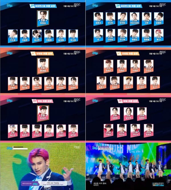 15일 오후 방송된 MBC ‘쇼음악중심’ 613회에서는 오디션 프로그램 ‘언더나인틴’ 각 팀별 순위가 공개됐다.