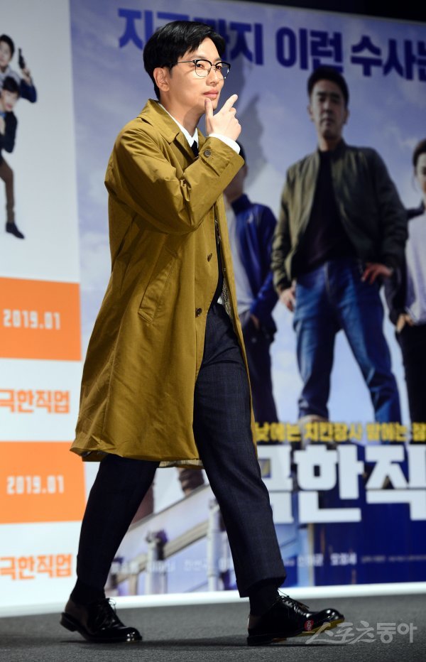 17일 서울 압구정CGV에 영화 ‘극한직업(이병헌 감독)’ 제작보고회가 열렸다. 배우 이동휘가 카메라를 향해 포즈를 취하고 있다.