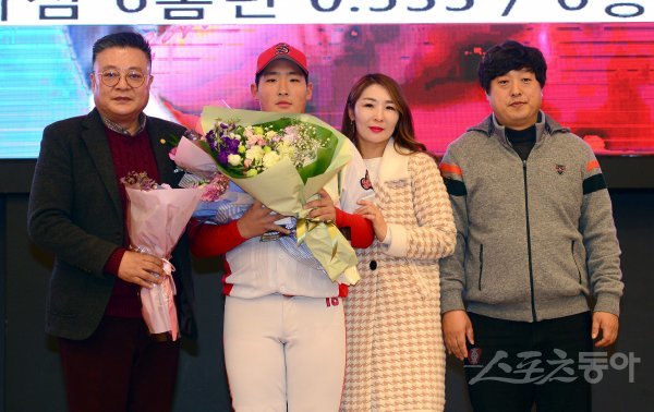 17일 서울 서초구 더케이호텔 서울 컨벤션센터에서 열린 ‘2018 야구 소프트볼인의 밤’ 시상식에서 초등부 우수선수상을 수상한 박성훈(송정동초)이 김길수 강원도야구소프트볼협회 회장과 기념촬영을 하고 있다.