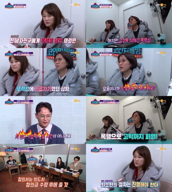 어제(16일) 방송된 KBS Joy ‘코인 법률방’ 11회에서는 감금, 협박, 폭행까지 전 남자친구에게 데이트 폭력을 당한 의뢰인의 사연이 소개돼 시청자들을 충격으로 물들였다.