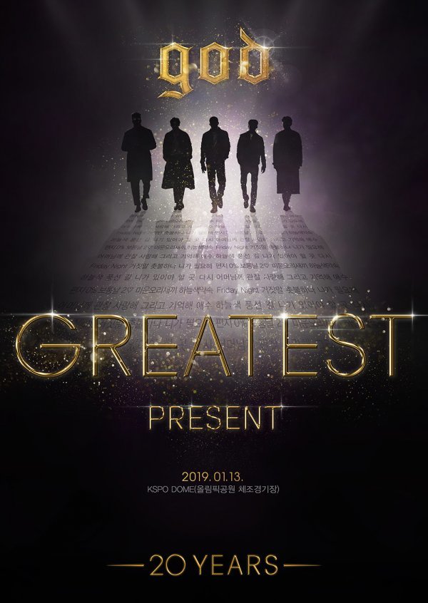 god GREATEST 20th Anniversary <PRESENT>는 지오디의 ‘현재’를 있게 만들어준 팬들에게 소중한 시간을 ‘선물’하는 자리로 지오디 멤버들은 20주년 기념 공연의 정점을 찍을 특별한 순간을 만들기 위해 준비에 매진하고 있다.