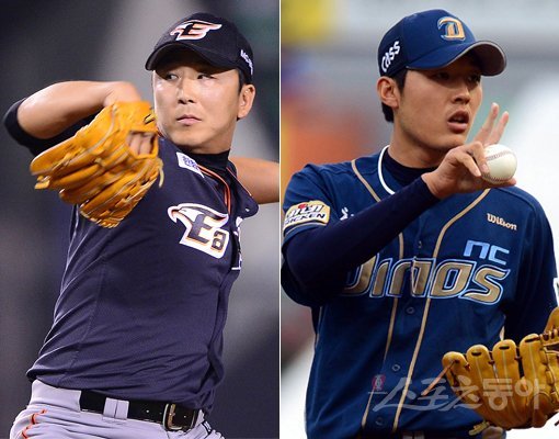 한화 정우람(왼쪽)-전 NC 이태양. 스포츠동아DB