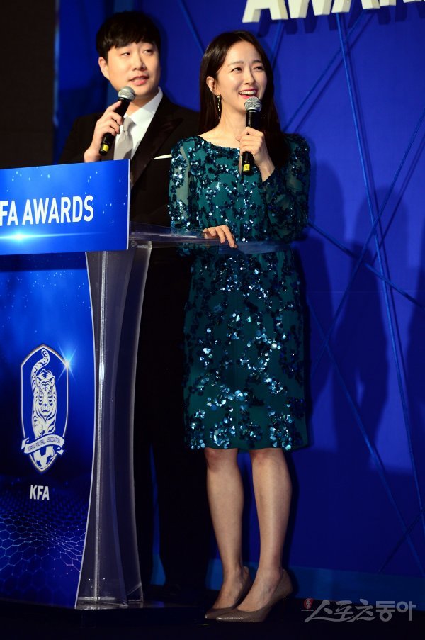 18일 서울 종로구 JW메리어트 동대문 스퀘어 서울에서 ‘2018 대한축구협회(KFA) 어워즈’가 열렸다. 배성재, 박선영 아나운서가 사회를 맡아 시상식을 진행하고 있다.