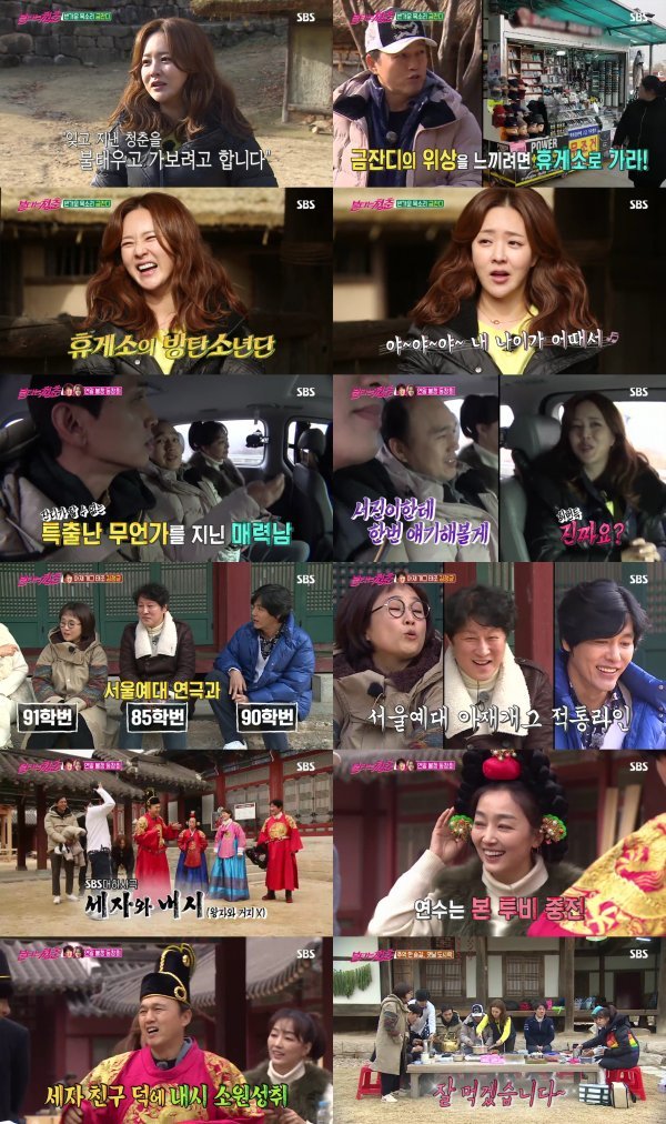 한편, 궁궐팀을 둘러보던 청춘들은 김정균을 만났다. 송은이, 최성국과 서울예대 동문이자 선배인 김정균은 만나자마자 아재 개그 본성을 드러내 큰 웃음을 안겼다. 이들은 다같이 궁궐 내 궁중 한복을 입고, ‘불청’ 판 즉석 사극을 연출하기도 했다. 평소 내시 역할만 하고 곤룡포를 입어보지 못했던 김광규는 최성국 덕분에 세자 체험을 하며 ‘왕자와 거지’가 아닌 ‘세자와 내시’로 변신했다.