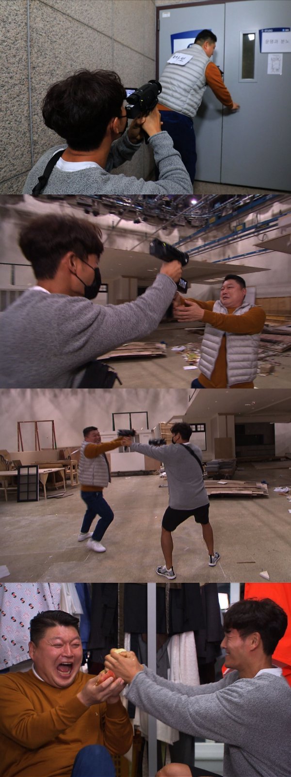 두 사람의 만남은 시작부터 강렬했다. 김종국이 초반 기선 제압을 하기 위해 변장을 하고 깜짝 등장한 것. 이를 꿈에도 모르고 있던 강호동은 갑자기 나타난 김종국을 보고 깜짝 놀라며 당황했다. 이어 두 사람은 카메라를 마치 권총처럼 서로에게 겨누며 대치했다. 그 모습은 마치 누와르 영화를 방불케 했다는 후문.