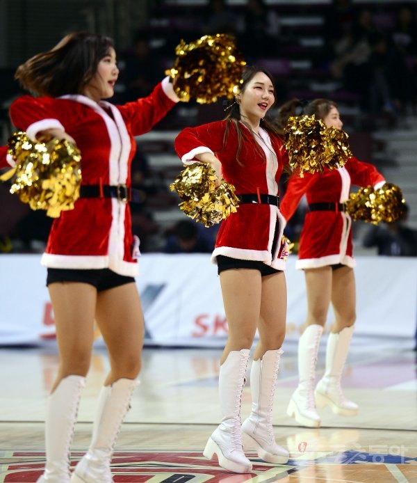 19일 안양실내체육관에서 열린 ‘2018-2019 SKT 5GX 프로농구’ 서울 삼성과 안양 KGC인삼공사 경기에서 치어리더가 공연을 펼치고 있다.