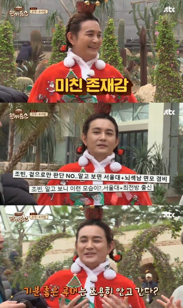 이날 조빈은 크리스마스 트리 장식을 하고 등장했다. 이에 이경규는 “미친 것 같다”고 말했고, 조빈은 자신이 이 같은 장식을 한 것에 대해 “크리스마스 특집이기 때문이다”고 이유를 말해 웃음을 자아내기도 했다.