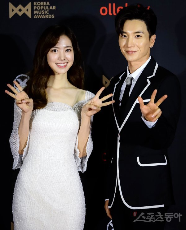 배우 진세연과 슈퍼주니어 이특(오른쪽)이 20일 경기도 고양시 일산 킨텍스에서 열린 ‘2018 대한민국대중음악시상식’(2018 KOREA POPULAR MUSIC AWARDS·이하 2018 KPMA) 레드카펫에 참석해 포토타임을 갖고 있다.