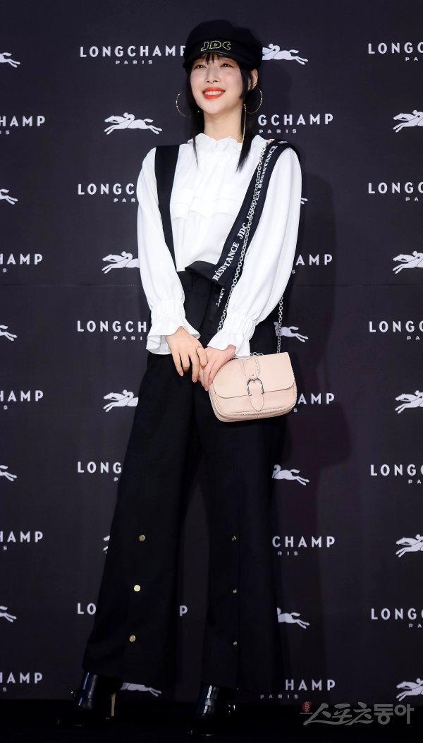배우 설리가 21일 서울 송파구 롯데백화점 잠실점에서 열린 프랑스 토탈 패션 럭셔리 브랜드 롱샴의 부띠크 오픈 기념 포토월에서 포즈를 취하고 있다.