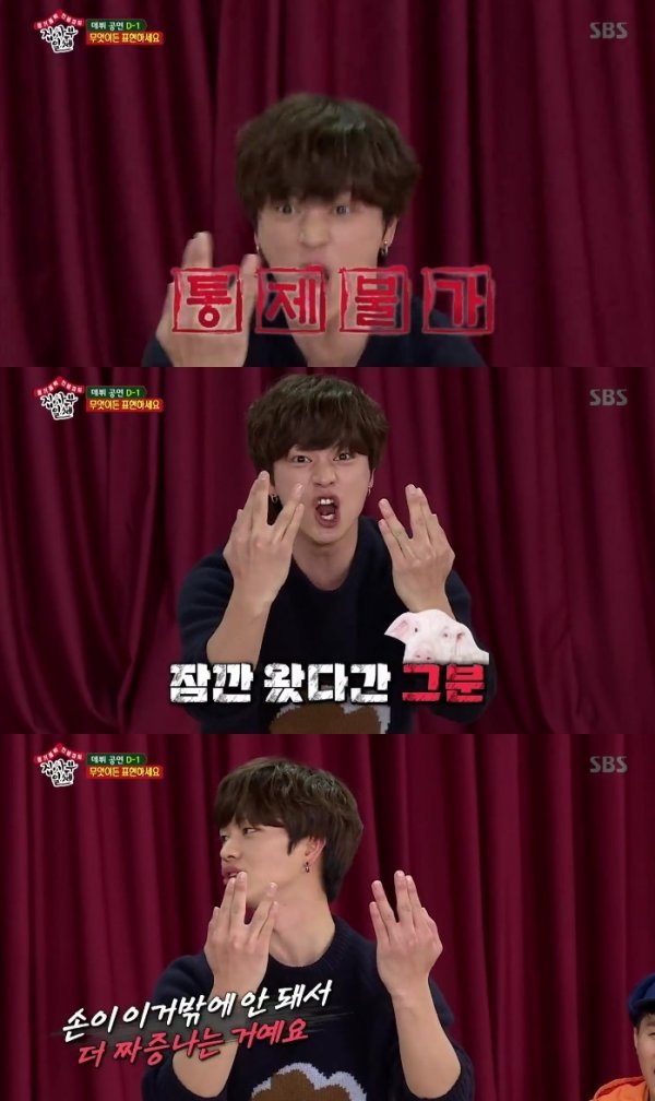 이날 이순재는 멤버들에게 각각 형용사와 명사 카드를 뽑게 해 새롭게 정의된 단어들을 연기하게 했다. 육성재는 이에 화가 난 바다를 완벽하게 표현해 웃음을 자아냈다.