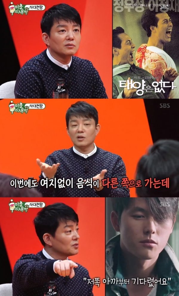 이범수는 “그 때 촬영 스태프들과 함께 식사를 했는데 우리 테이블이 시킨 음식이 계속 다른 곳으로 갔다. 무명 배우들이다 보니 아무도 우리를 챙겨주지 않았다”고 말했다.