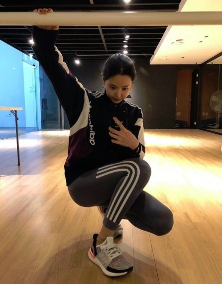 손나은은 이날 사진에서 회색 레깅스 자태와 신발을 강조한 사진을 공개했다. 평소 운동으로 다져진 몸매의 대명사답게 스포티한 모습이 눈길을 끈다.
