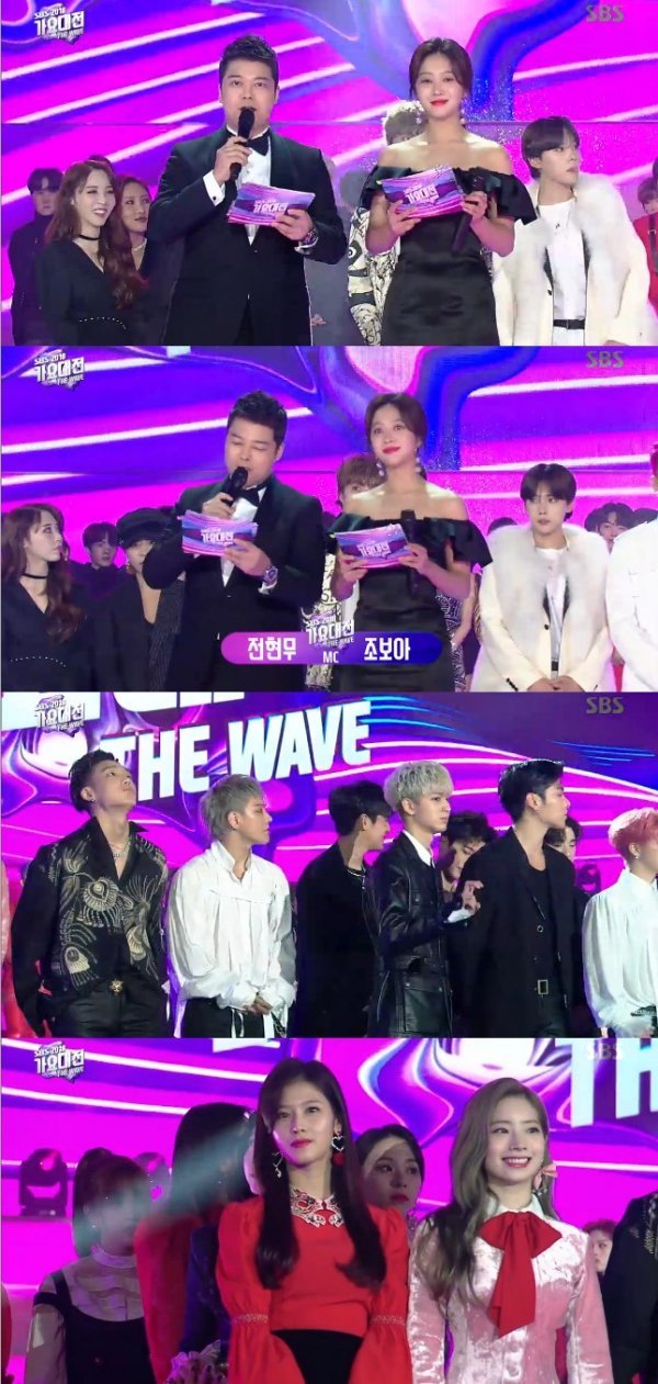 출연 가수들이 모두 무대에 오르자 MC 전현무와 조보아가 등장했다. 조보아는 "믿고 보는 MC 전현무와 함께 해 든든하다. 잘 부탁한다"고 인사를 했다.
