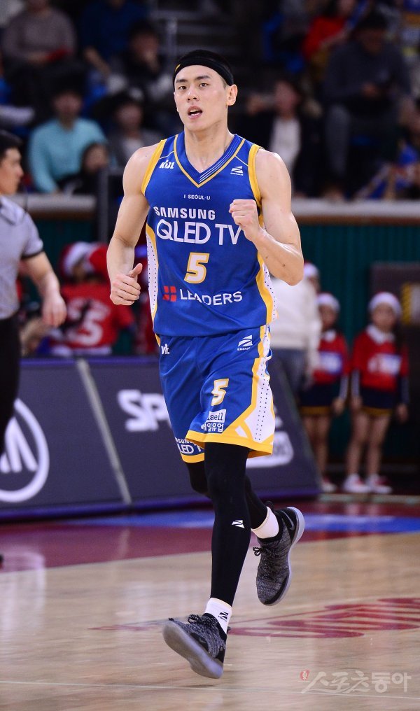 25일 잠실학생체육관에서 열린 ‘2018-2019 SKT 5GX 프로농구’ 서울 삼성과 서울 SK 경기에서 삼성 이관희가 역전슛을 성공시킨 후 주먹을 쥐고 있다.