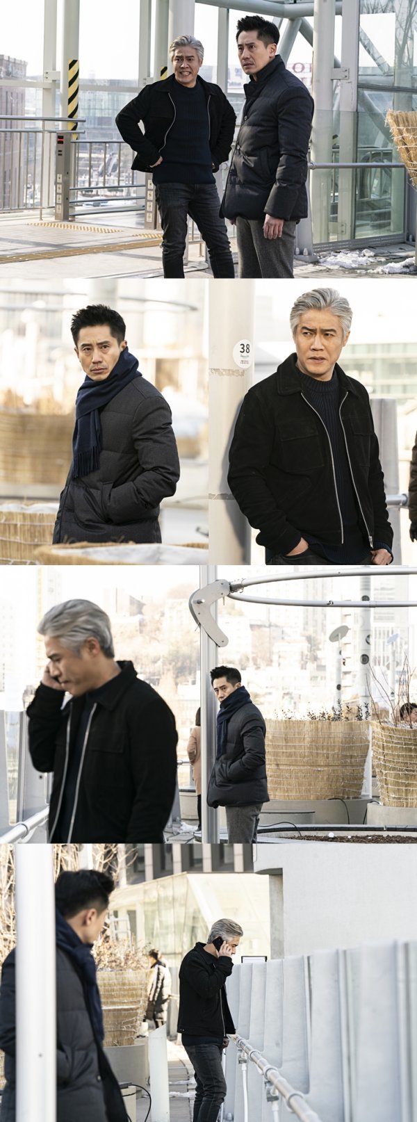 특히 누군가와 통화를 하고 있는 박호산의 모습 뒤로 의심의 눈초리를 거두지 않고 주의 깊게 살피고 있는 신하균의 모습에서는 사건 현장에서 유독 빛을 발하는 특유의 날카로운 수사의 촉이 느껴져 더욱 궁금증을 자아낸다. 이에 박호산 역시 또 다른 의도를 숨겨둔 듯 통화를 하면서도 신하균을 향한 경계를 늦추지 않고 있고 있어 눈길을 끈다.