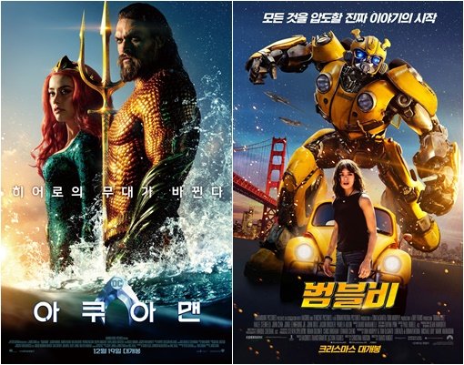 영화 ‘아쿠아맨’이 200만 관객을 돌파했고 ‘범블비’는 개봉 첫날 50만 관객을 동원했다.