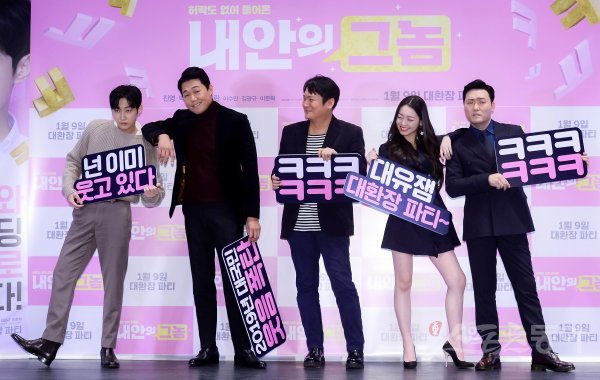 26일 서울 광진구 롯데시네마 건대입구에서 열린 영화 ‘내안의 그놈’ 언론시사회 및 기자간담회에 감독과 출연 배우들이 참석해 포토타임을 갖고 있다.