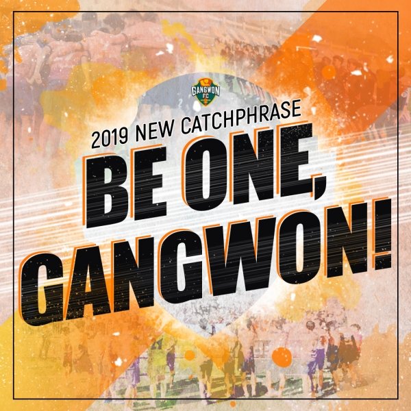 강원FC는 지난 13일 팬들과 함께하는 2019시즌 캐치프레이즈 공모전을 열었다. 그 결과 ‘BE ONE, GANGWON’을 최종 선정했다.