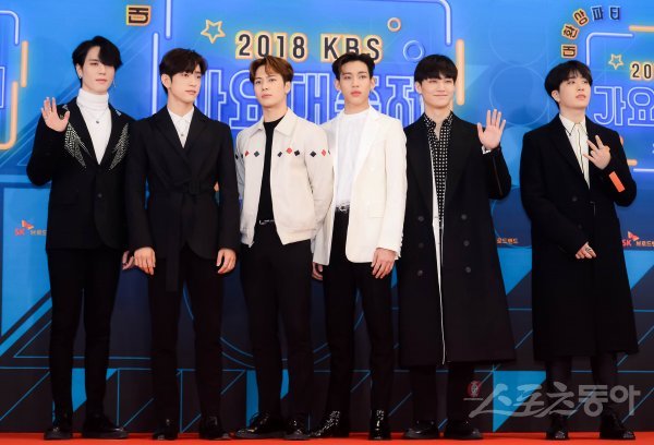 갓세븐이 28일 서울 영등포구 여의도동 KBS 신관 웨딩홀에서 열린 ‘2018 KBS 가요대축제’ 포토월에 참석해 포토타임을 갖고 있다.