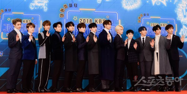 세븐틴이 28일 서울 영등포구 여의도동 KBS 신관 웨딩홀에서 열린 ‘2018 KBS 가요대축제’ 포토월에 참석해 포토타임을 갖고 있다.