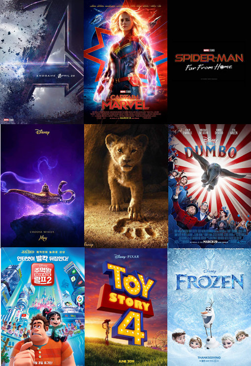 라인업을 보기만 해도 황홀할 지경이다. 내년 1분기 중 디즈니와 폭스가 외국 정부의 승인을 얻고 인수·합병을 마무리할 것으로 보이는 가운데 2019년 디즈니의 라인업은 더없이 화려하다. ‘어벤져스 : 엔드 게임’부터 ‘라이온킹’ 실사판, 그리고 ‘토이스토리4’ 등 영웅들의 대활약과 추억의 친구들을 다시 만나게 될 것으로 보인다.