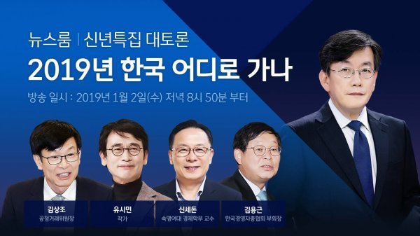 JTBC ‘뉴스룸’이 2019년 1월 2일 신년특집 대토론 ‘2019년 한국, 어디로 가나’를 방송한다.