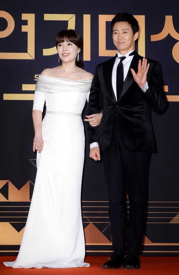 배우 하희라-최수종 부부가 31일 서울 영등포구 여의도동 KBS홀에서 열린 ‘2018 KBS 연기대상’ 레드카펫에 참석해 포토타임을 갖고 있다.