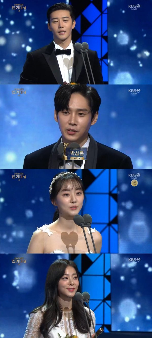 31일 방송된 KBS 2TV ‘2018 KBS 연기대상’에서는 김권, 박성훈, 박세완, 설인아가 신인상을 수상했다.