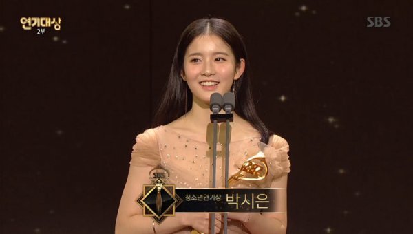 배우 박시은이 SBS 연기대상에서 청소년 연기상을 수상했다.