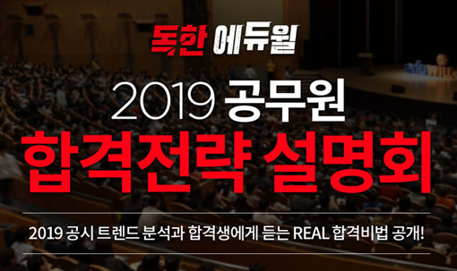 이에 에듀윌은 오는 1월 5일 토요일 오후 1시 30분 서울 한국외대 사이버관 대강당 1층에서 2019년 대비 9급 공무원 합격전략 설명회를 실시한다.