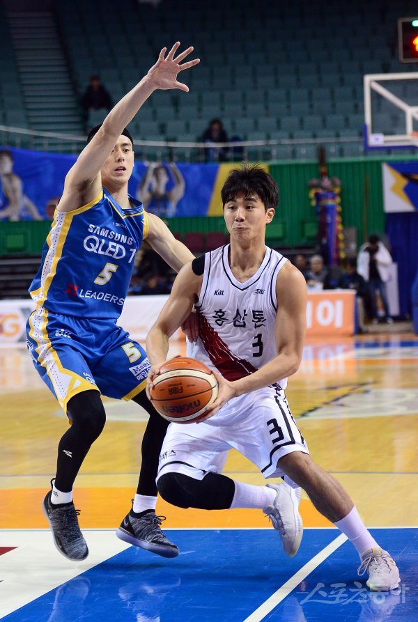 2일 서울 잠실체육관에서 열린 ‘2018-2019 SKT 5GX 프로농구’ 안양 KGC와 서울 삼성 경기에서 KGC 박지훈이 삼성 이관희의 수비를 뚫고 골밑을 공격하고 있다.