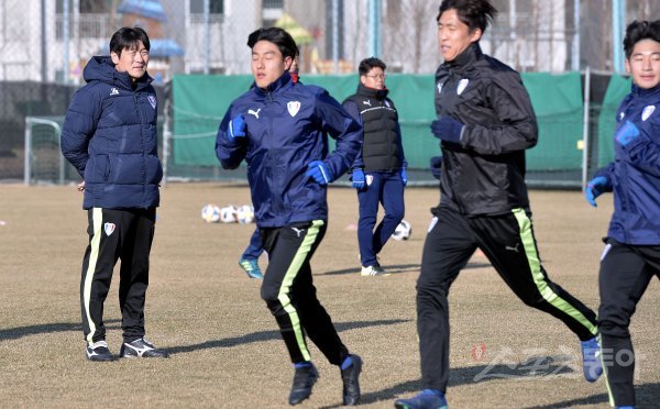 수원삼성 제 5대 감독에 취임한 이임생 감독이 3일 경기도 화성 수원삼성블루윙즈 클럽하우스에서 첫 소집훈련을 가졌다. 이임생 신임 감독이 선수들의 훈련을 바라보고 있다.