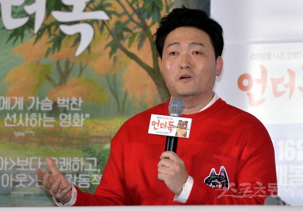 7일 서울 용산 CGV에서 열린 영화 ‘언더독’ 언론시사회에 참석한 이준혁이 출연 소감을 밝히고 있다.