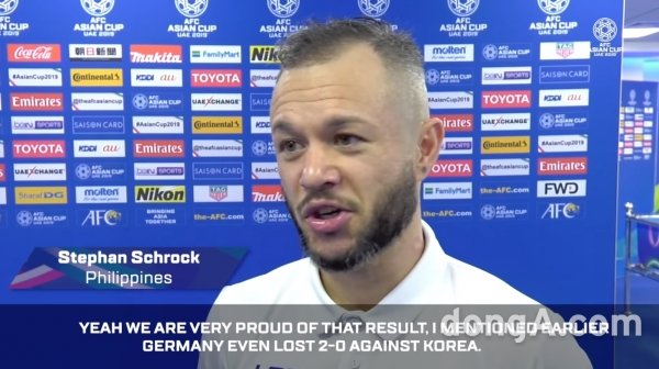 2019 아시안컵 한국과의 경기에서 필리핀 축구대표팀 주장 완장을 차고 나선 슈테판 슈뢰크가 한국 전 선전에 기뻐했다.